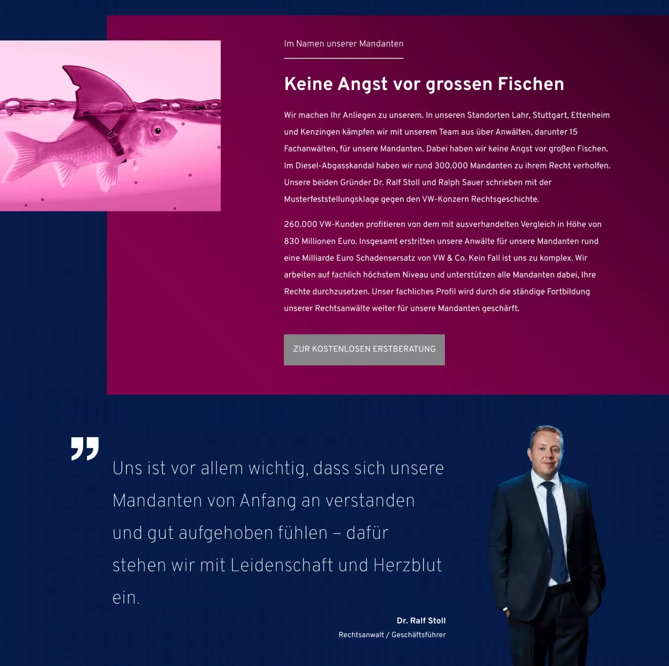 Durch die Fusion der beiden Verbraucherkanzleien Dr. Stoll und Sauer und Grossmann und Haas war ein umfassender Relaunch der bisherigen Website notwendig geworden.